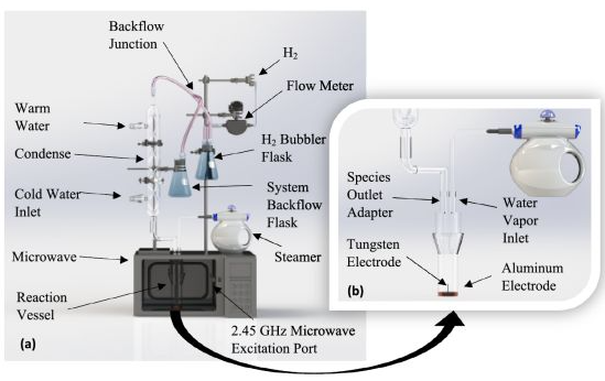 在此次研究中,研究人员设计了一种独特的新系统,采用2%的铈钨天线,以分解商用改良2.45GHz微波中的水蒸气。